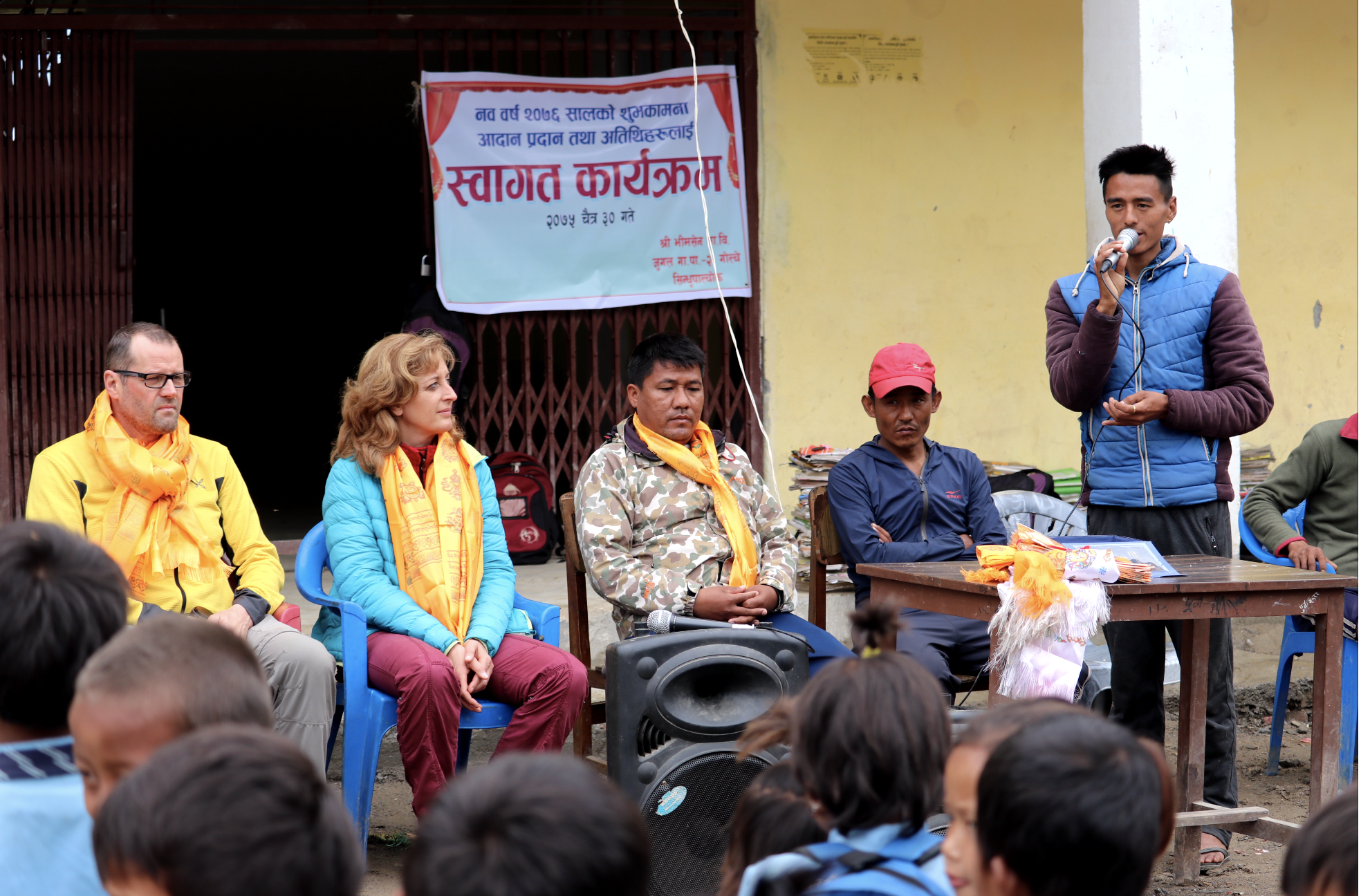 Nun, vier Jahre später, fast auf den Tag genau nach dem verheerenden Erdbeben in Nepal mit über 8000 Toten, besuchen Gerhard Albicker und ich das kleine Bergdorf Golche nahe der tibetischen Grenze erneut und unsere Freude über das mit unseren Projekt Erreichte lässt sich kaum in Worte fassen: Mit unseren Spendengeldern konnte ein ca. fünf Kilometer langer Fahrweg gebaut werden. Der Jeep braucht dafür zwar auch noch einmal eine ganze Stunde, es geht immer am Abhang entlang, über Schotter und durch Flüsse, jedoch ist es gerade mit Gepäck leichter als der knapp 3-stündige Fußmarsch zuvor. Mit der Straße kam im letzten Jahr der Strom in das kleine Dorf. Es gibt nun einige Laternen auf den Wegen, eine Laterne auch auf dem Schulgelände und vereinzelt waren Glühlampen in den Häusern zu sehen. Meist behelfen sich die Menschen mit sehr kleinen Solarpanels, um die Handy aufzuladen, ihre einzige Verbindung zur Außenwelt.