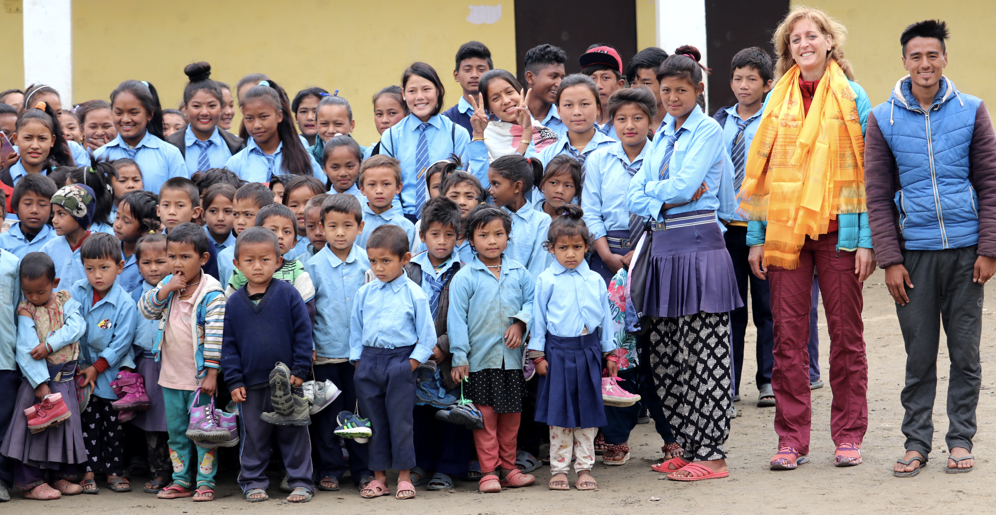 Wir haben über 200 Paar gespendete Schuhe im Gepäck, denn Gerhard Albicker hat in seinem Ort eine große Spendenaktion gestartet und so sind viele, fast neue Schuhe zusammengekommen. Auch bringen wir Zahnbürsten und Zahncreme, Fuß- und Volleybälle, Buntstifte und Malbücher mit. Asal Syangbo, der uns diesmal wieder begleitet, hat mehrere Stapel Schulhefte im Gepäck.